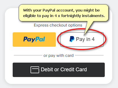Prefer to make 4 x $10 fortnightly payments instead? PayPal has a "Pay in 4" service that may apply to you. Learn more ↗ about it.