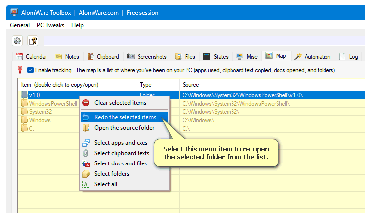 When you accidentally close a folder in Windows, it can be annoying and laborious to find and re-open it. Not anymore! With AlomWare Toolbox, you can quickly get back to it (and closed apps and docs) in just a few clicks.