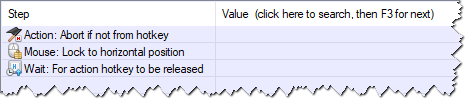Figure 8 shows an example action that locks your mouse position horizontally while you're holding down a hotkey, such as when drawing straight horizontal lines in a paint program.