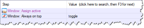 Some actions require an Assign step first, before subsequent steps can do their task. For example, if you wanted to make the current window always stay on top of all others, you'd need to use the Window: Assign active step first in the action, and then follow that up with other "Windows" steps to act on that window (see Example 1 below). The same concept applies for other actions such as working with files: you assign a file to work with first (with the File: Assign step) before adding other "File" steps after it in the action (see Example 2 below).