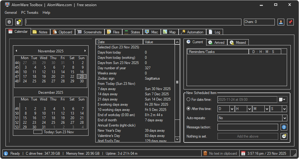 Tip: There is a third-party system-wide workaround that you can use to make all windows on your PC dark, called GreyEveTheme (backup). If you install this theme on your PC, and turn off the color scheme in AlomWare Toolbox's settings (Figure 3), then AlomWare Toolbox will appear dark as shown in Figure 4. This may (or may not) be a solution that you can live with. Please note that no support is provided by AlomWare for using this theme; please contact the theme's creator for any assistance with it.